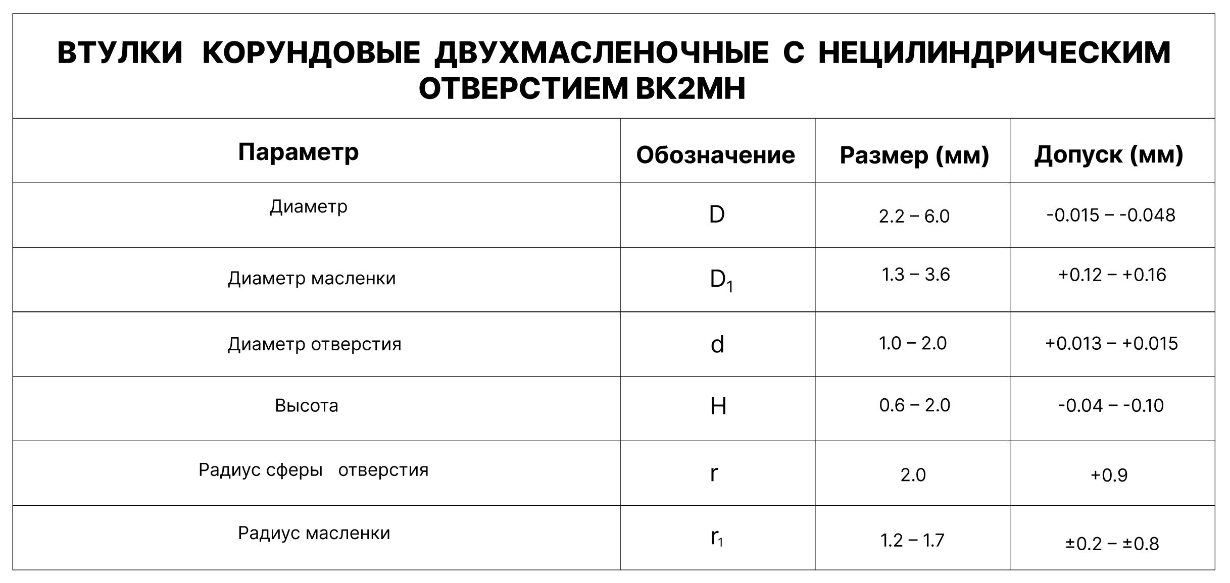 ВТУЛКИ КОРУНДОВЫЕ ДВУХМАСЛЕНОЧНЫЕ С НЕЦИЛИНДРИЧЕСКИМ