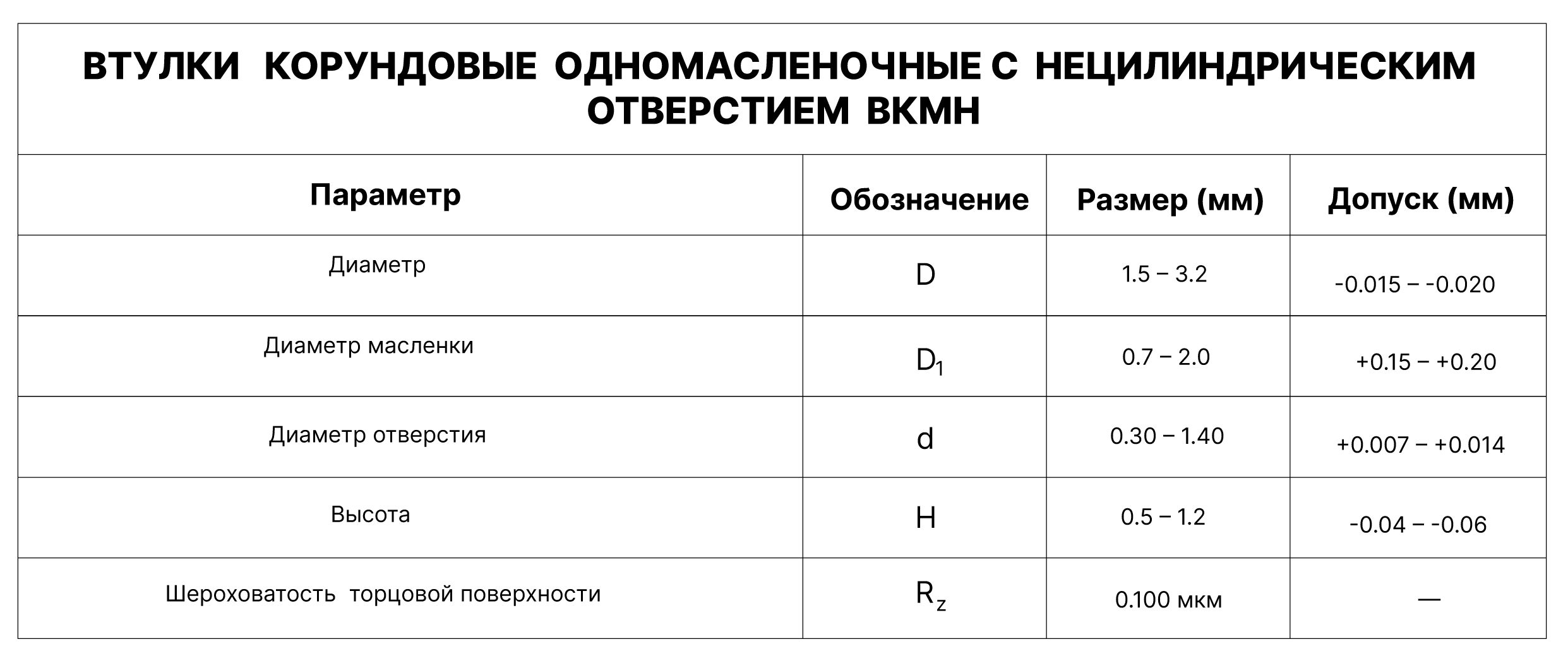 ВТУЛКИ КОРУНДОВЫЕ ОДНОМАСЛЕНОЧНЫЕ С НЕЦИЛИНДРИЧЕСКИМ