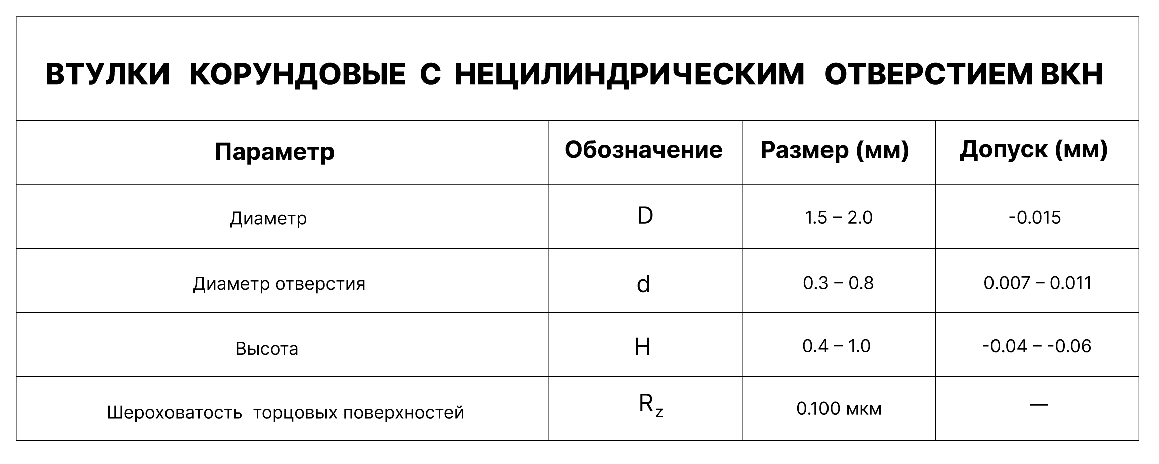ВТУЛКИ КОРУНДОВЫЕ С НЕЦИЛИНДРИЧЕСКИМ ОТВЕРСТИЕМ ВКН