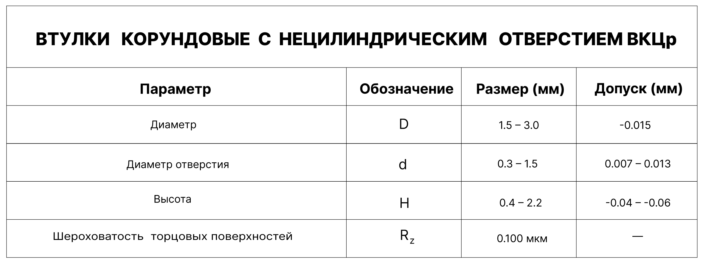 ВТУЛКИ КОРУНДОВЫЕ С НЕЦИЛИНДРИЧЕСКИМ ОТВЕРСТИЕМ ВКЦp