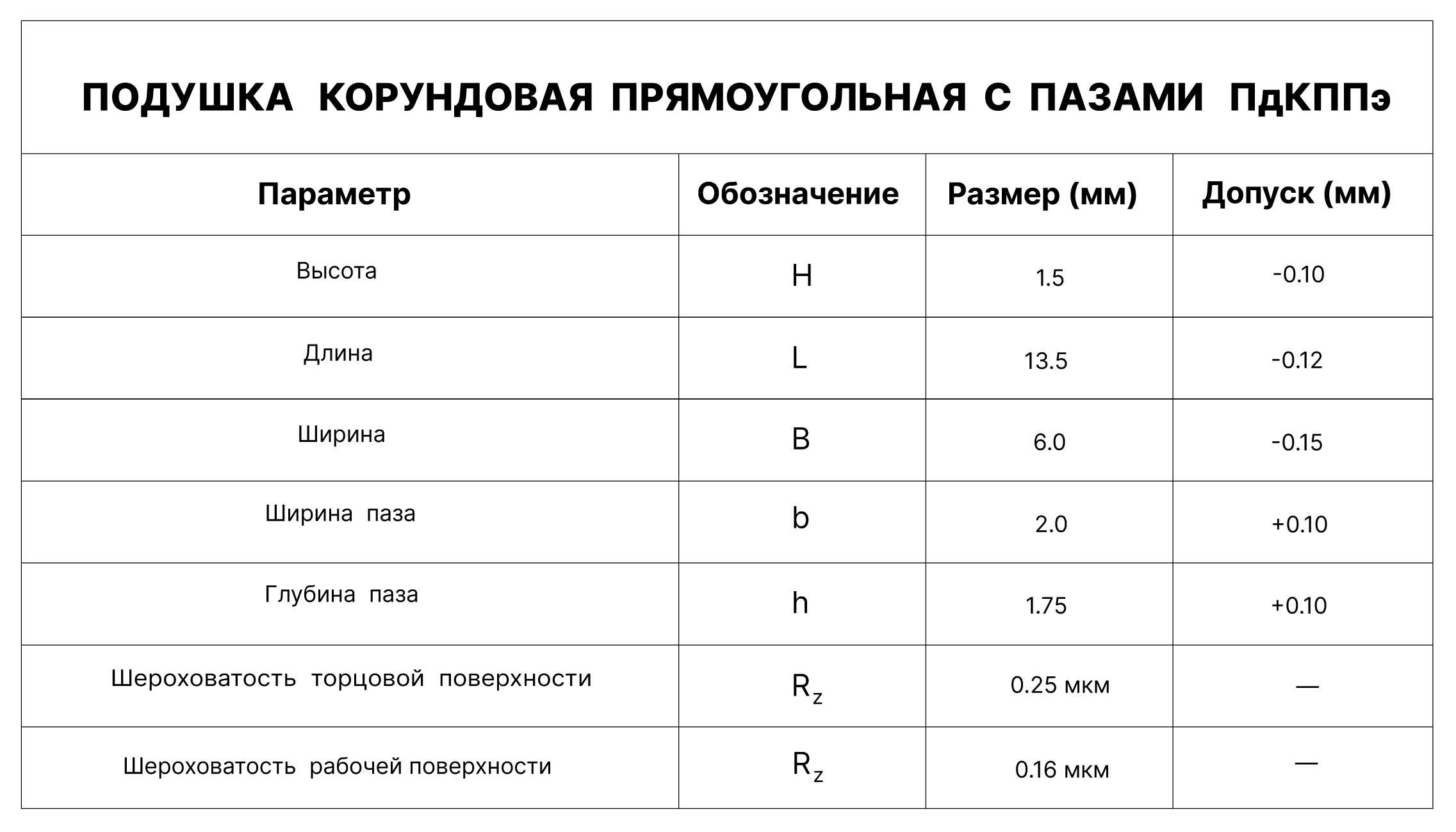 ПОДУШКА КОРУНДОВАЯ ПРЯМОУГОЛЬНАЯ С ПАЗАМИ ПдКППэ