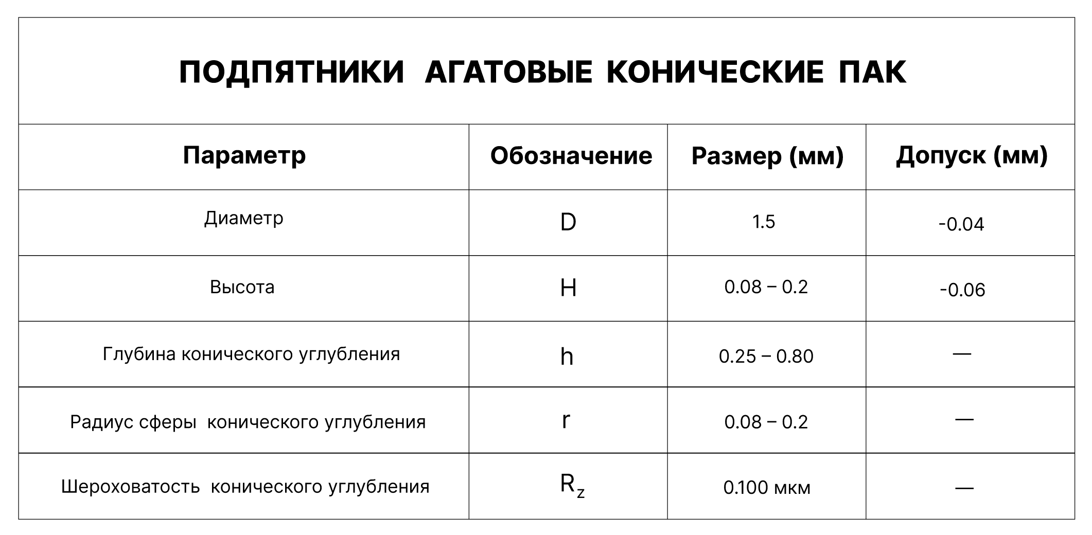 ПОДПЯТНИКИ АГАТОВЫЕ КОНИЧЕСКИЕ ПАК