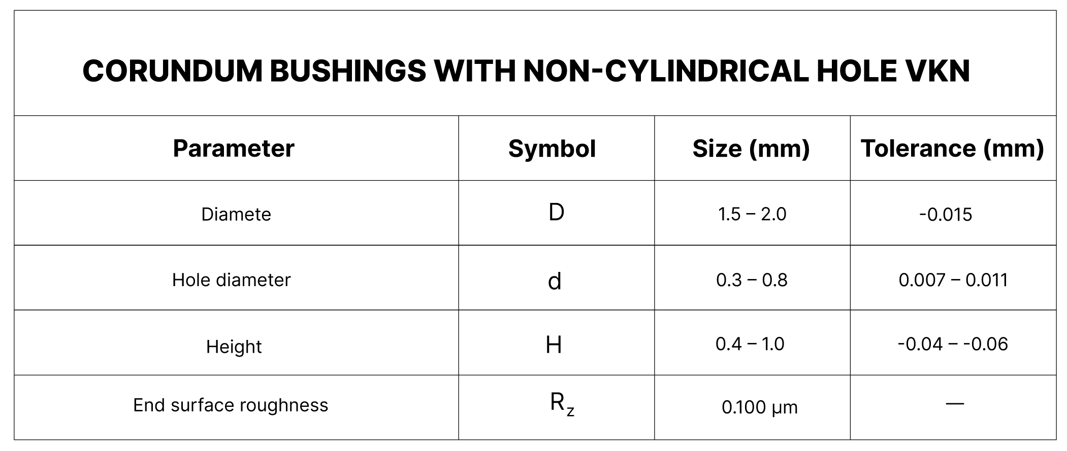 CORUNDUM BUSHINGS WITH NON-CYLINDRICAL HOLE VKN